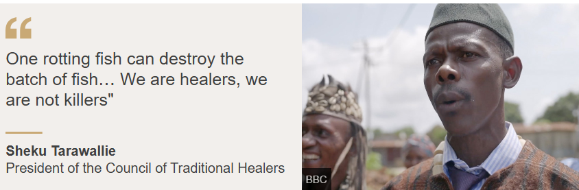 “We are trying very hard to clear our image. The ordinary person doesn’t understand, so they class us [all] as bad herbalists. One rotting fish can destroy the batch of fish… We are healers, we are not killers,” he told BBC Africa Eye.