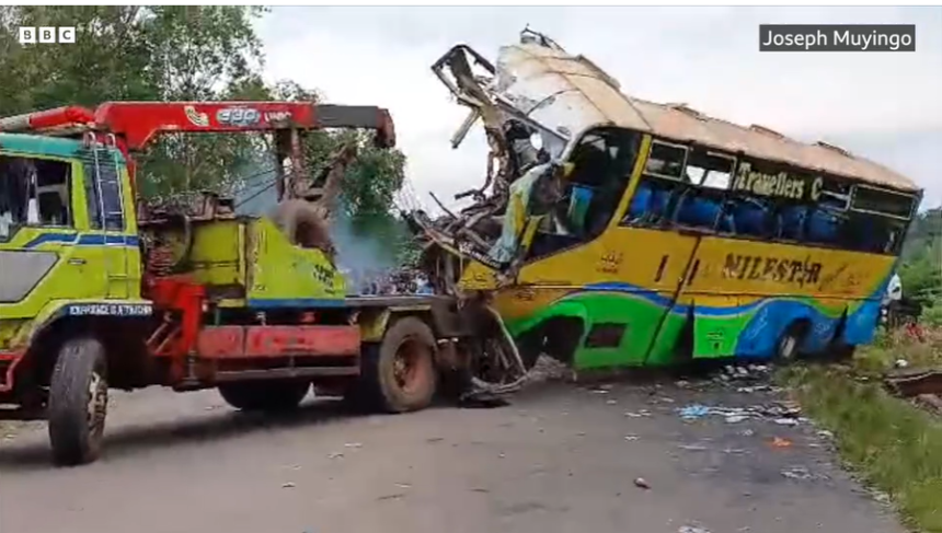 The crash occurred when two buses travelling in opposite directions “met head on” while trying to overtake two other vehicles – a lorry and a car –on the Kampala-Gulu Highway at 00:15 local time (21:15 GMT), the Uganda Police Force said.