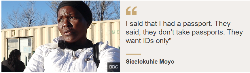 “I said that I had a passport. They said, they don’t take passports. They want IDs only,” Ms Moyo said, hiding her frustration behind a polite smile.
