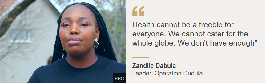 “We want prioritisation of South Africans. Emergency care – we understand that you must be treated – but if you are illegal you must be handed over to the law enforcers,” she told the BBC.