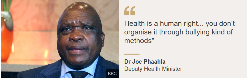 “We don’t agree with that approach because health is a human right. As much as we understand the fact that the provision of services must be properly organised, you don’t organise it through bullying kind of methods,” he told the BBC.